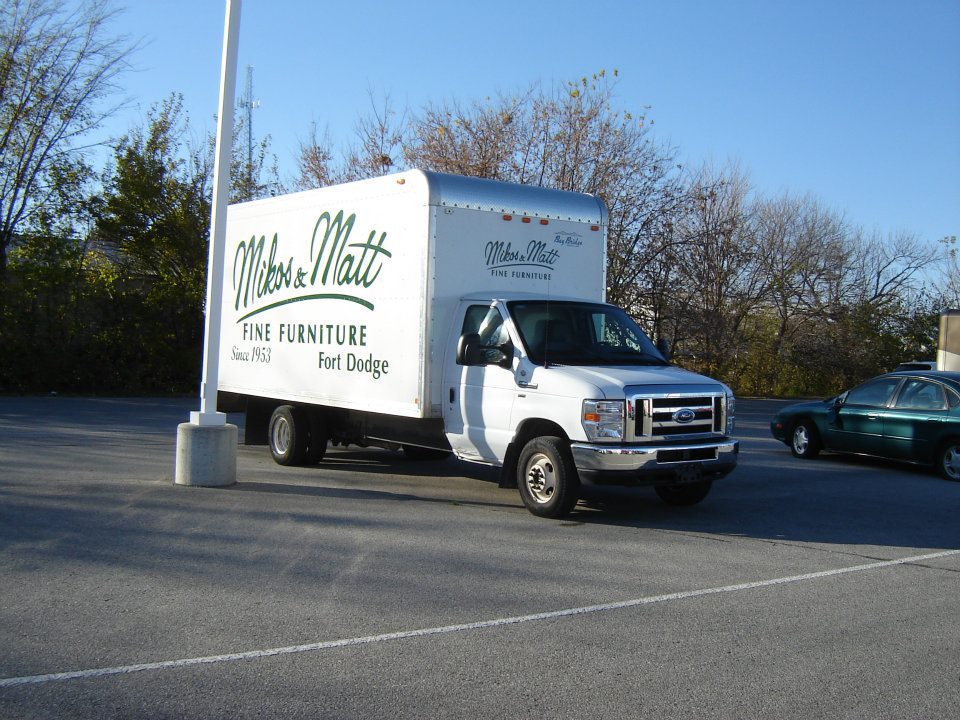 Here at Mikos and Matt Fine Furniture, we offer full service delivery - a rare commodity in the furniture world. We charge only $25 for delivery and setup in Fort Dodge. Our delivery drivers work exclusively for Mikos and Matt Fine Furniture and take great pride in your complete satisfaction. Our staff will bring your furniture into your home and place it where you would like it and haul away packaging. We will also haul away pre-existing furniture for an extra fee. Exclusions apply*. Our delivery range includes towns like Humboldt, Webster City, Manson, Rockwell City, Algona, Pocahontas, Gowrie, and more!