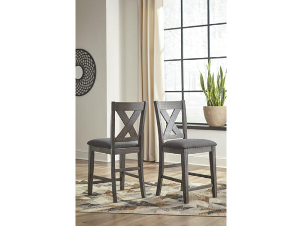 Simple and stylish, the Tanner Creek console stools are constructed of solid rubberwood block legs in a Greystone finish with a padded upholstered seat in a grey tweed fabric. Set includes three stools. Product Details • Wood: Melamine & Rubberwood Solid Frame • Finish: Greystone Finish • Dimensions: W19 x D16 x H25 • Box Dimensions: W41 x D18 x H14 • Weight: 50 lbs. • Cubes: 5.9 Item Features • Nylon Chair Glides • Distressed Finish • Weight Limit: 250 Pounds