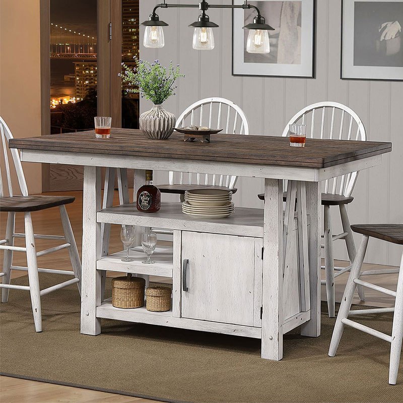 Weathered, rustic surfaces emphasize the simple beauty of everyday things. Farmhouse features a weathered white finish that looks better over time. A picnic style table generously styled to accommodate family and friends has two end leaves (18″) that expand the table to 98″. The classic Windsor chair known for its comfort, style, and value has simple turned legs and back spindles. Use the server in the dining room, foyer, or as a media console in the living room. This multi functional piece is 55″ wide with 2 storage drawers and 2 open bottom shelves, one that accommodates wine storage. The open style server is accented with back diagonal slats to continue the farmhouse design. Add two of the leaning shelves on either side of the server to make a storage wall. The leaning shelves features 5 graduated shelves. Product Features: Collection: Farmhouse Wood: Rubberwood Solids & Veneers Finish: Two Tone White Finish w/ Wood Tone Tops Style: Transitional Solid Living by Liberty Heavy Distressing 1 Adj Shelf Behind Doors Solid Wood Table Tops Two Smaller Open Shelves For Display